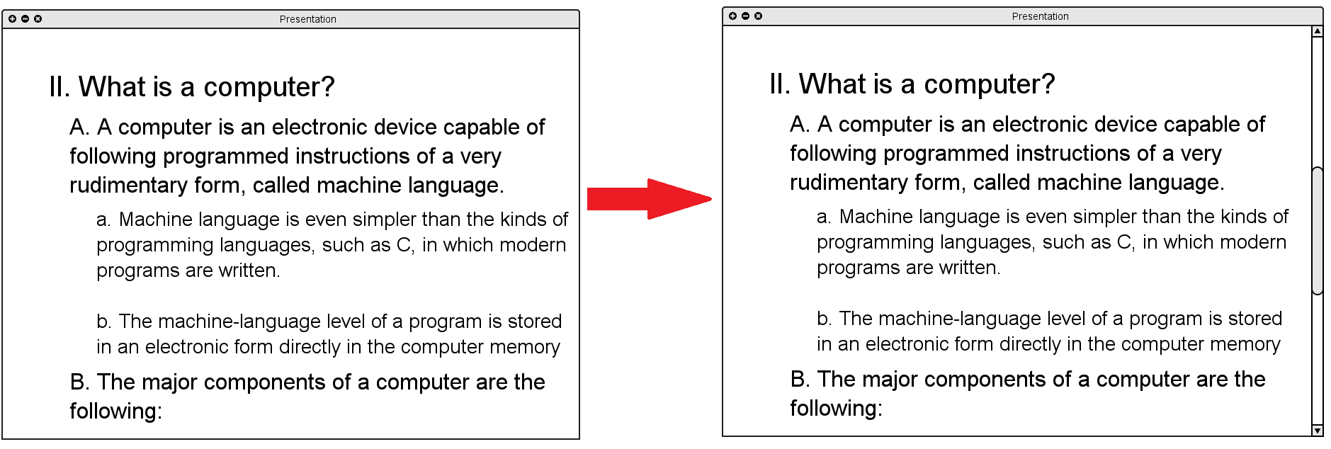 When the user expands content past the end of the presentation window, a scrollbar appears and the user has the ability to scroll down and view additional information. The result of this is shown in Figure 2.4.3.5.