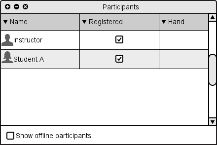 Unselecting "Show offline students" returns the Participants Window to the default state, as shown in Figure 2.6.1.