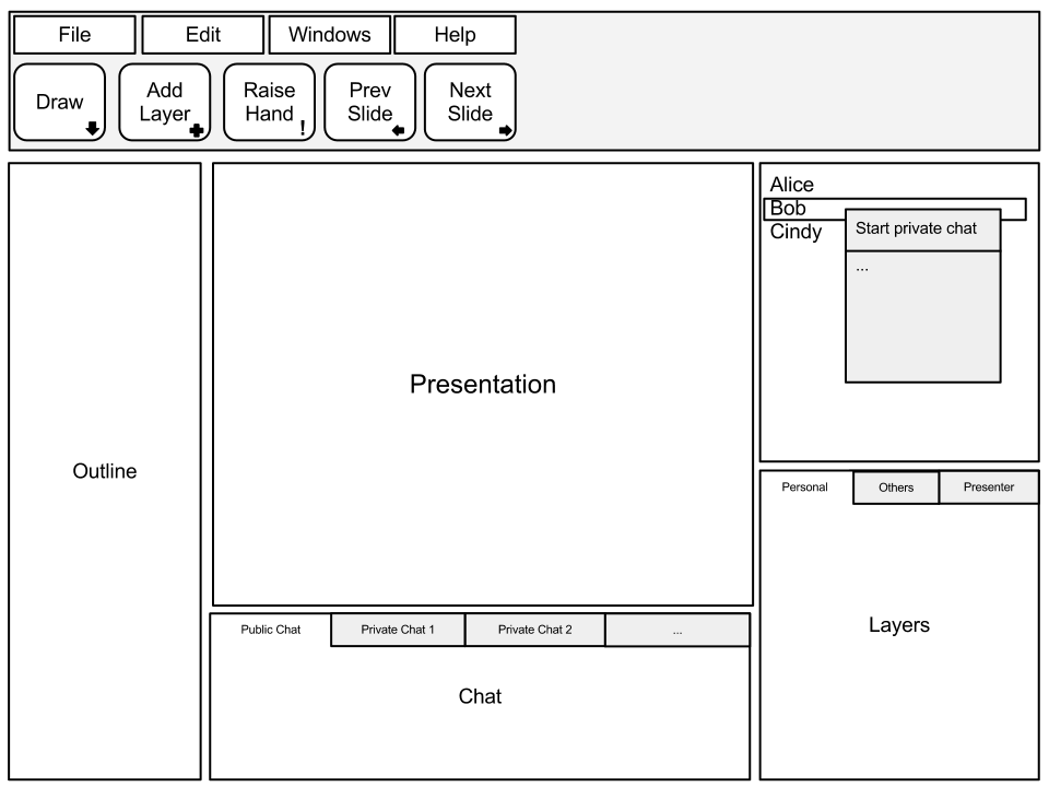 To start a private chat with another participant, the user right clicks on the participants window and selects "Start private chat."