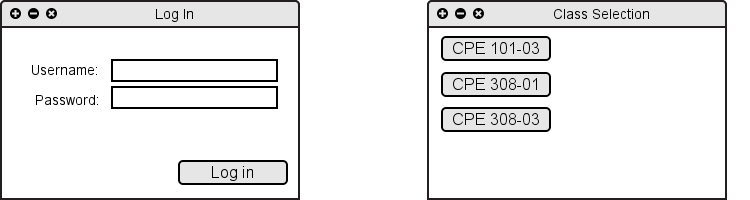 To start using the interactive presentation functionality of E-Class, the instructor first "connects" to their class database by choosing the 'Class > Open Class' menu item, which displays in series the two dialogs shown in Figure 2.2.3.1.