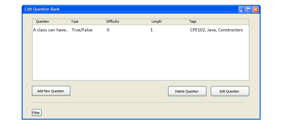 Figure 5: A True/False question added to the Question Bank