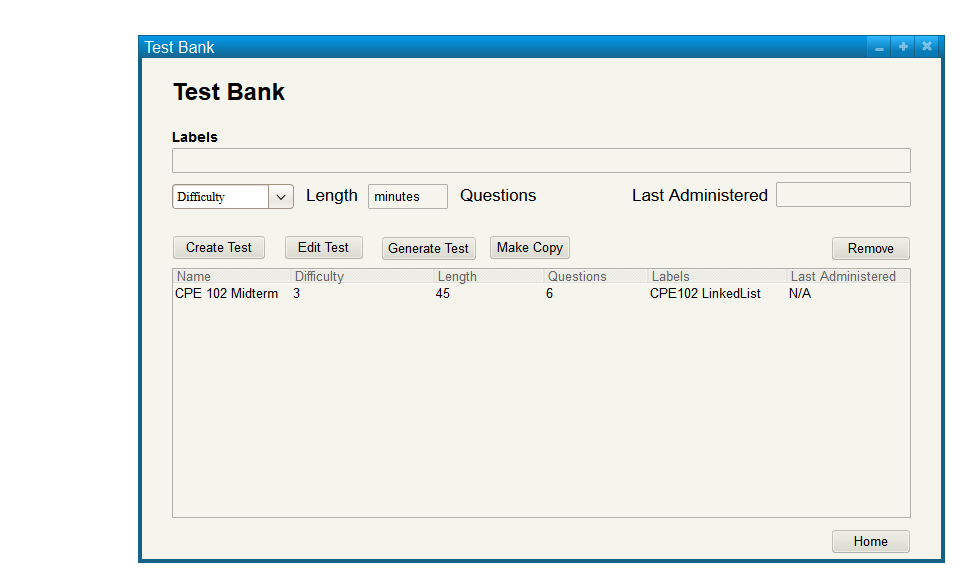 Figure 2: Populated Test Bank.