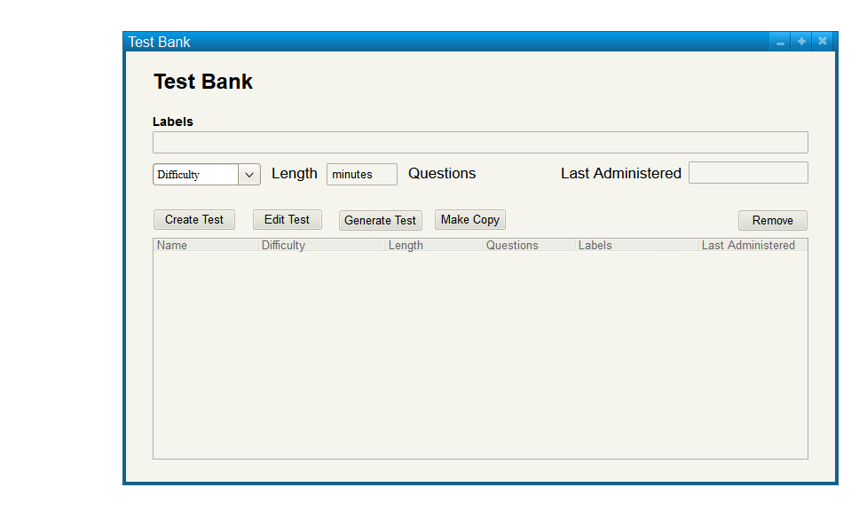 Figure 1: Empty Test Bank.