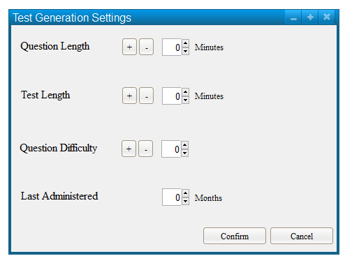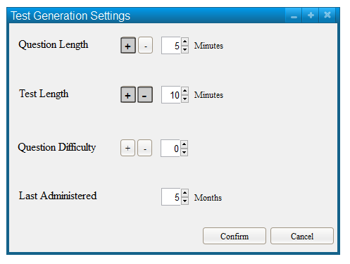 Question and test length settings are set to be within +/- a number of units from the user's original parameters