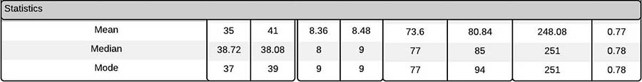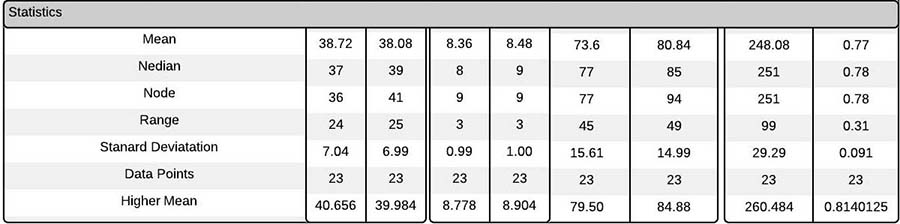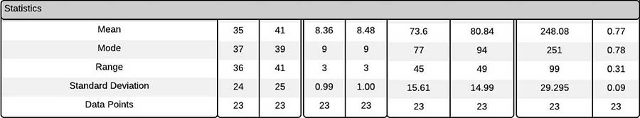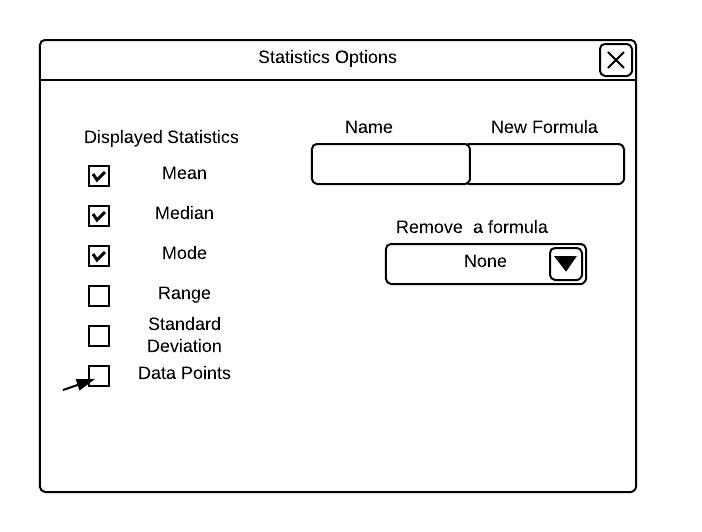 shows the default options for the statistics bar. By default the Mean, Median, Mode, Range, Standard Deviation, and Data Points are displayed.