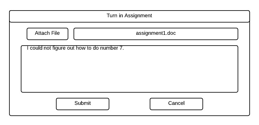 To attatch a file for submission, students click on "Attach File" which opens their operating system's default file picker. After they pick the file they want to submit, the window looks like Figure 2.7.3.3: