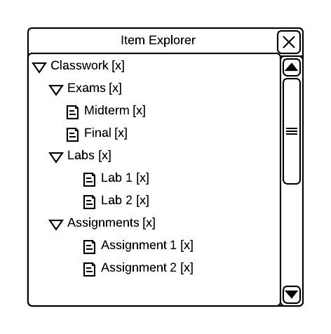 The system saves the user's selection of hidden/shown items in real time and reflects it in the main view as shown in . When the user is finished using the Item Explorer, he or she closes it by clicking the X on its title bar.