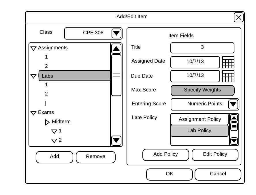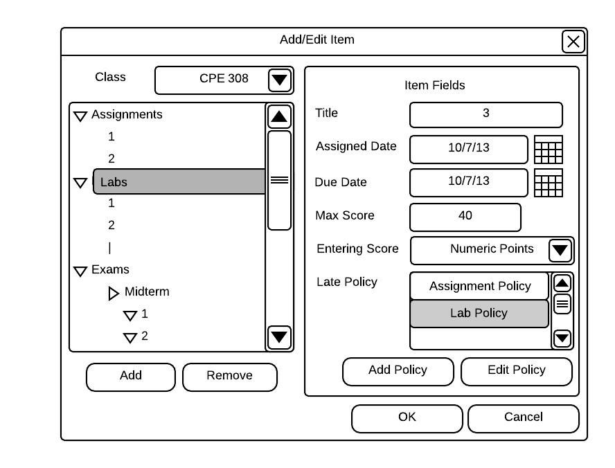 Populated Add/Edit Item Dialog of Fixed Coursework
