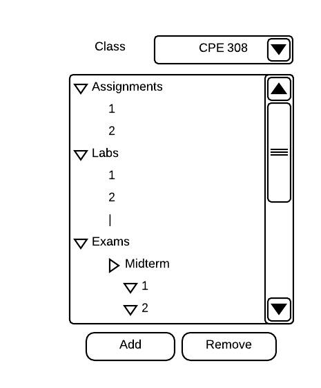 The class field is a drop-down menu for instructors to select a registered class that needs a new item. See Section 2.2 for the steps on creating a class. Immediately after clicking the desired class, the area located directly under the class drop-down menu is filled with the different roots the instructor wants the sub-item to be a part of (see ). If there is no item to be selected, the instructor has the option to create a new category via the Add button.