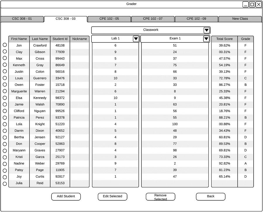 Once the instructor has filled in the student's information, the instructor can add the student to the current roster by selecting 'Add'. After the instructor selects 'Add', the add student window closes, and the window shown in .