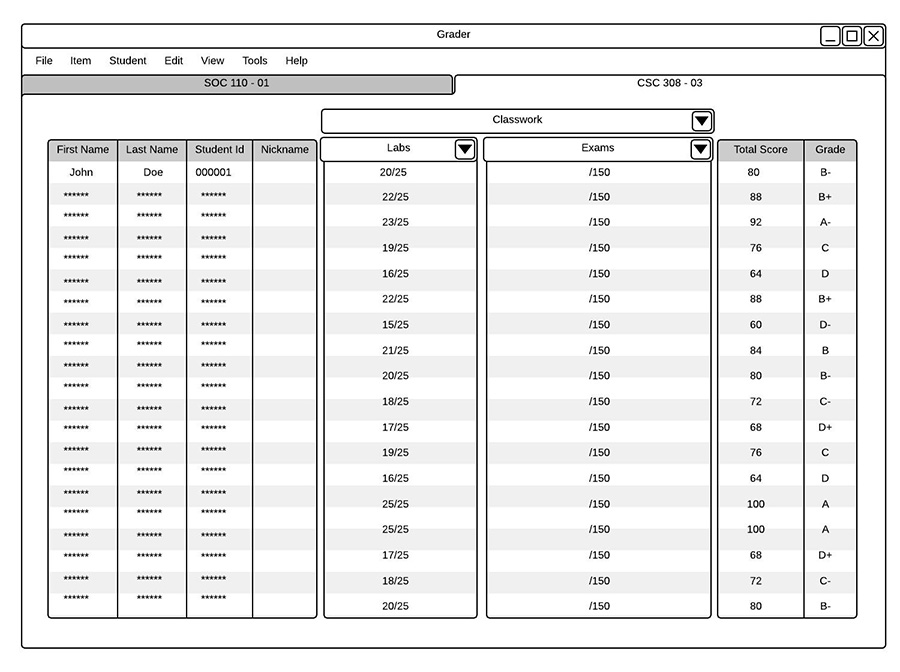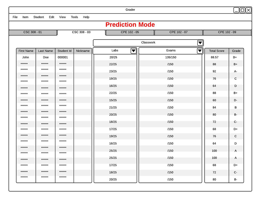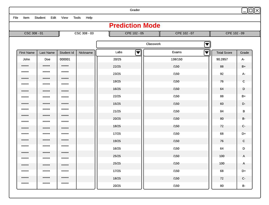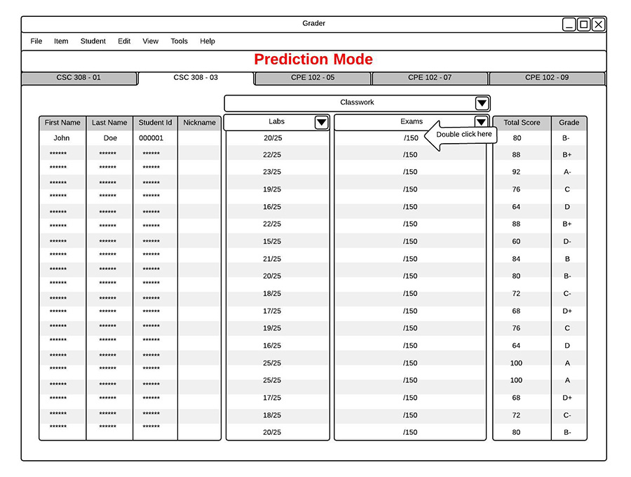 On the main view, students can fill in the score for any blank items by double clicking on that score, shown in Fugure 2.7.2.3, and typing in their predicted grade.