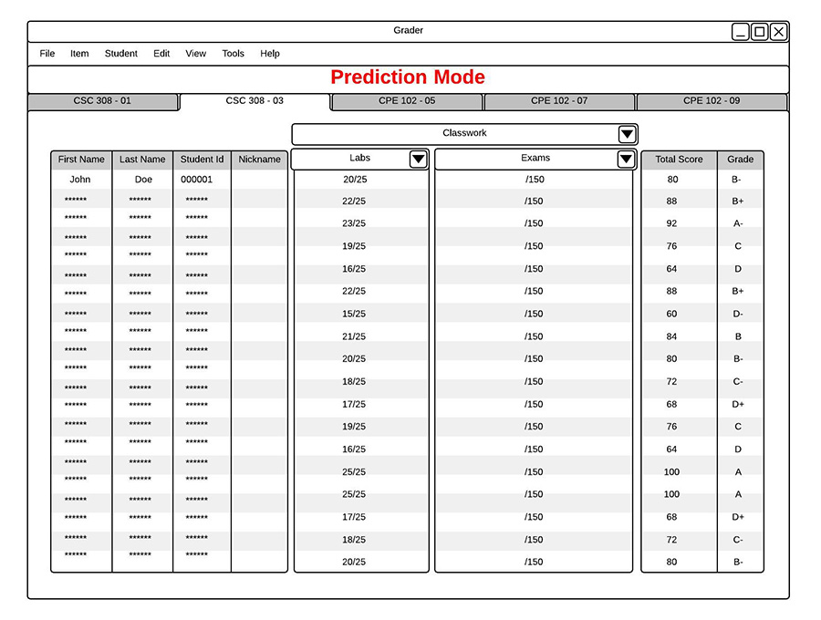 After students hit Enter on PCs or Return on Macs to finalize the prediction, the Total Score of the student will change to reflect the new predicted score and grade of the student will change to reflect the new predicted Total Score shown in Figure 2.7.2.4.