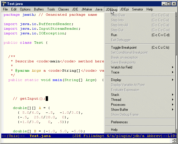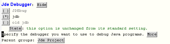 JDEbug is a Java debugger that comes with the Java Development Environment for Emacs. It permits you to execute a Java program step-by-step and display and modify the program's internal state. JDEbug features include: