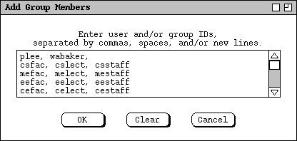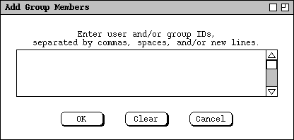 Pressing Clear in the add-user dialog erases any edits made since the dialog was displayed. `Cancel' cancels the add operation without adding to the database.