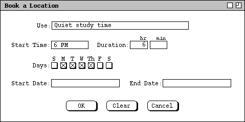 A Calendar Tool user who happens to be an administrator may run the regular-user Calendar Tool on a host computer to manage her own personal calendars and to schedule meetings for other users. When running the regular Calendar Tool in this way, the user is not considered to be a administrator at all. Further, the physical computer that happens to be a Calendar Tool central host is considered to be the user's local computer when running the regular Calendar Tool program. As explained in Section the distinction between central host computer versus local client computer is a logical distinction, in that the same physical computer can serve both functions. The precise definition of "administrator" is one who is running the Calendar Tool Administration program on any computer where the administration program happens to be installed.