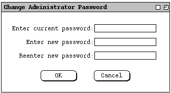 A registered user's password is the only piece of information stored on the central host that the user can change directly. To change a host password, the user first makes current the host on which the change is to occur, as explained in Section 2.6.6.2. Then the user executes the `Change Password' command in the regular-user `Admin' menu. In response, the system displays the dialog in Figure 251.