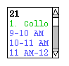 Since the height of each day in the month view is considerably shorter than in the week view, a transient vertical scrollbar is provided when the number of items in a day is greater than fits vertically in the display box for a day. "Transient" for the scrollbar means that it only appears when the user clicks within a day for which scrolling is necessary. For example, if the user clicks within the display box for Monday September 21 (in Figure 21), the scrollbar appears as shown in Figure 22.