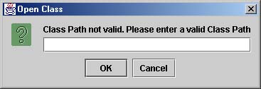 Picture of the Open Class dialog after the user has entered an invalid class path.