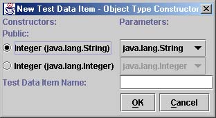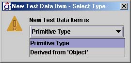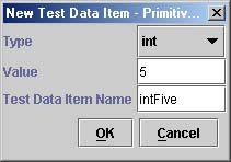 Test Data Item button will pop up the New Test Data Item dialog box which