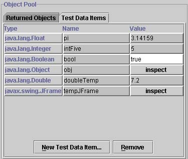 When the Returned Objects tab is selected, there are two buttons at the bottom. One is the Remove button that will remove the selected object from the pool. The other button is the 'Move to Test Data Items' button. This button will move the selected object to the test data items pool. There, its value can be modified and passed to a method as a parameter just like any other test data item.